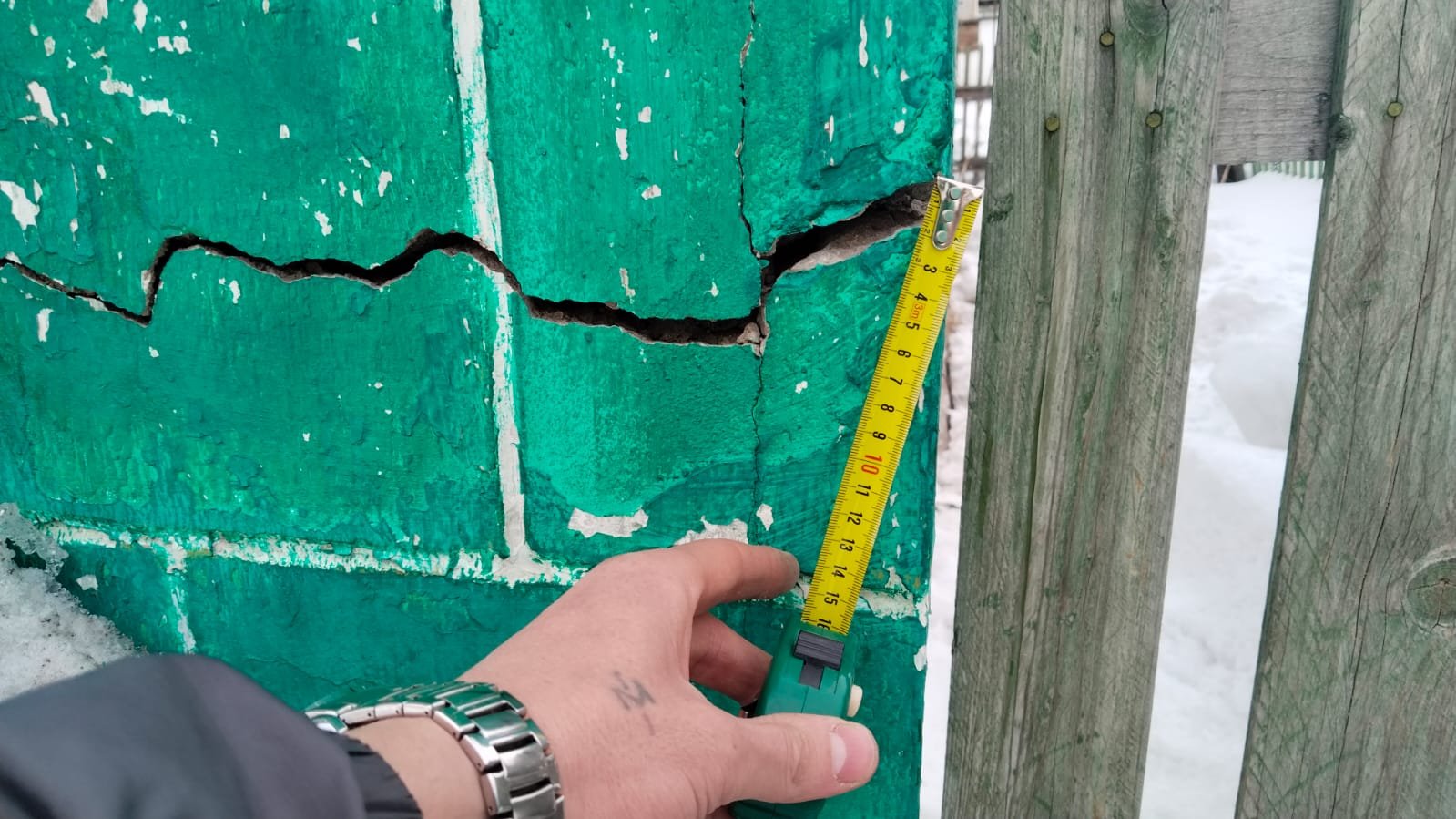 По его словам, он каждый день делает замеры трещин, которые продолжают увеличиваться. Так, утром 5 марта трещина в несущей стене была шесть сантиметров, а к обеду выросла до 10.