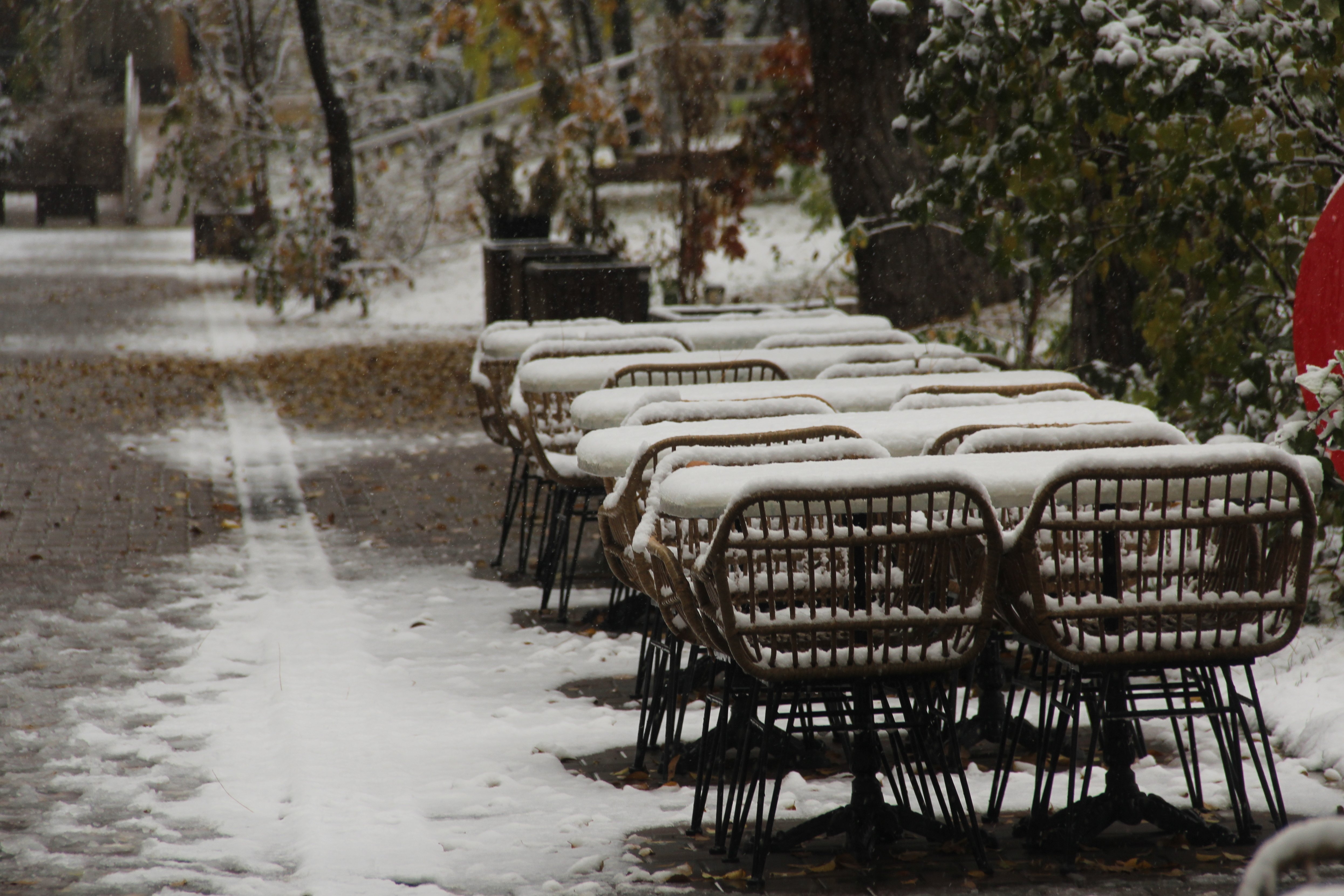 Примерно к 9:30, будто дождавшись, когда значительная часть горожан доберётся до работы, лёгкий снегопад перешёл в настоящую метель. За считанные минуты как минимум центр города покрыло толстым слоем снега, будто на дворе вовсе и не 5 ноября, а предновогодние дни.