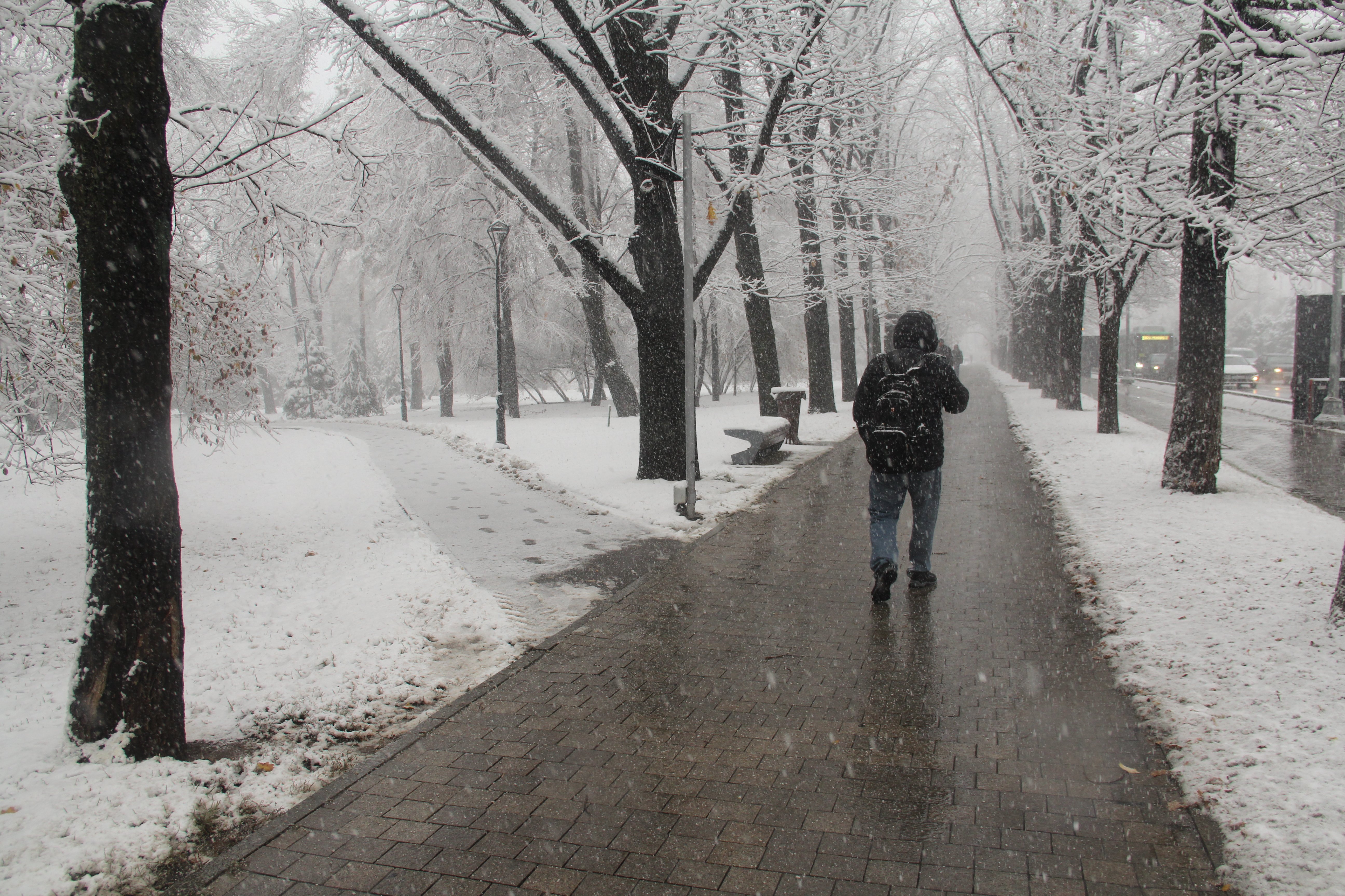 Журналист Orda.kz прогулялся по южной столице под первым снегопадом этой осени.